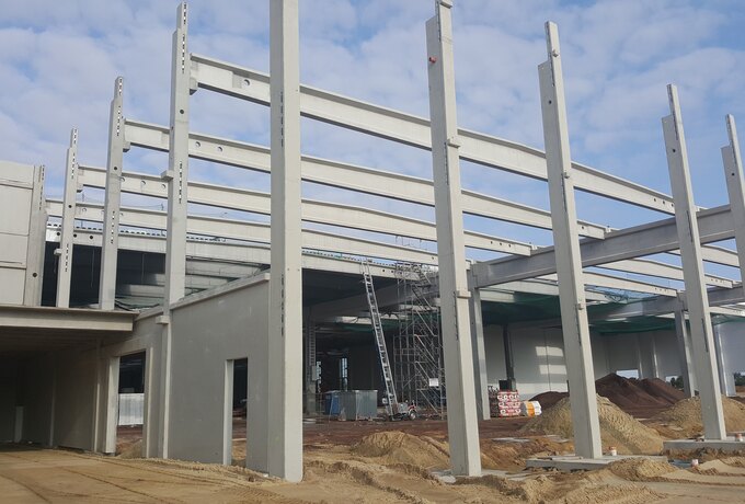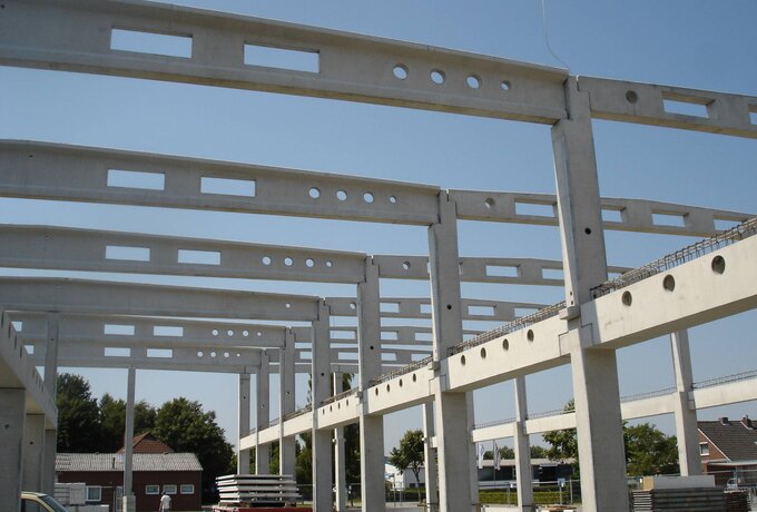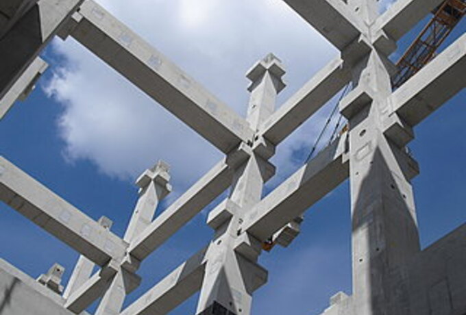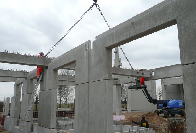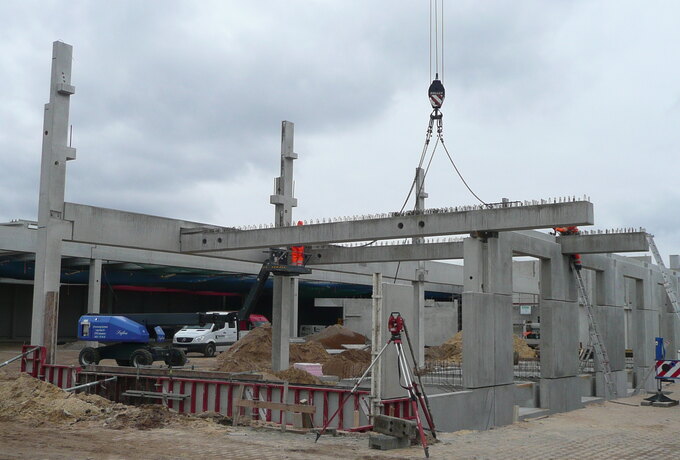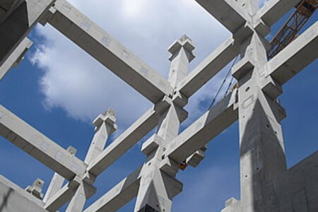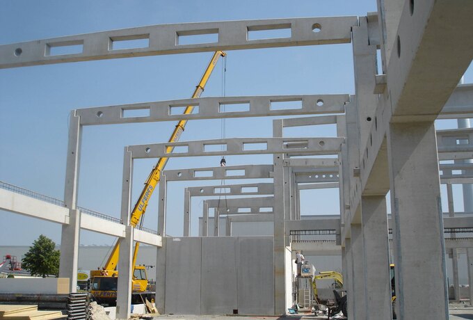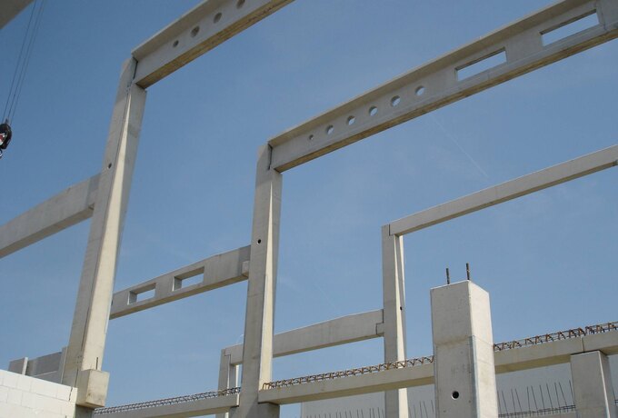 - 605 Stück konstruktive Stahlbetonfertigteile als mehrgeschossige Stützen, Binder, Riegel und Wände