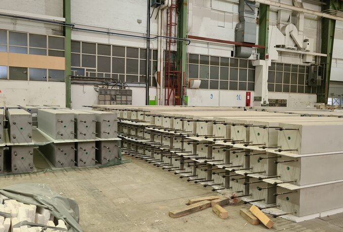 - 1.540 Stück konstruktive Stahlbetonfertigteile als Unterzüge und Wandplatten.